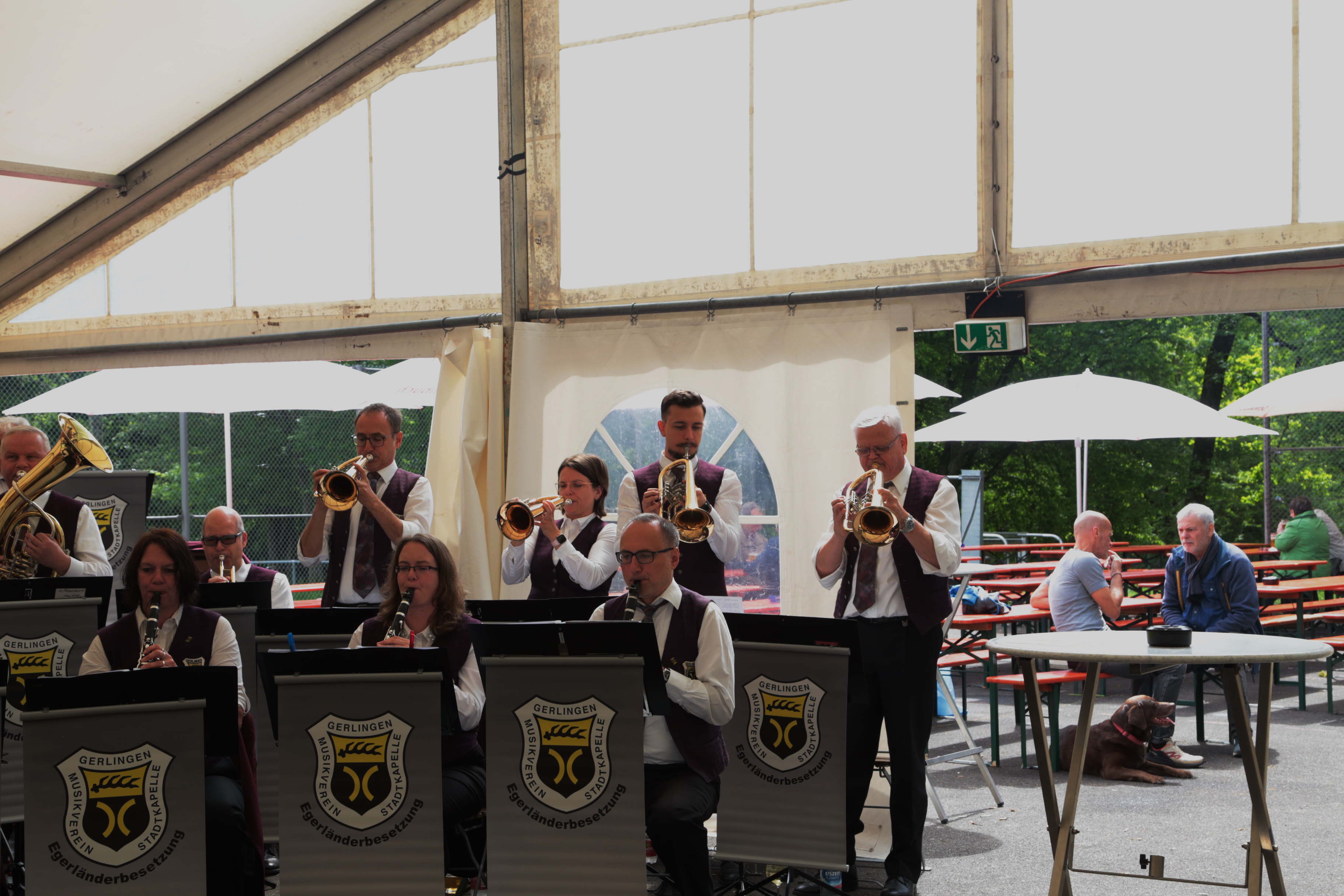 Am Sonntag, 5. Mai spielte die Egerländer Besetzung des Musikverein Gerlingens zum Frühschoppen beim Feuerbacher Göckelesfest auf. In drei Stunden wurden abwechselnd böhmische Blasmusik, moderne Arrangements und solistische Stücke präsentiert. Unser musikalischer Leiter Peter Gerl sorgte so für ein abwechselndes Programm, bei dem auch das ein oder andere Gesangsstück wie „Auf der Vogelwiese“ auf der Setlist stand. Speziell die solistischen Stücke wie „My Way“ oder eine moderne Version von „Hey Jude“ präsentiert kamen besonders gut beim Publikum an. Letzteres wurde von unserem Posaunisten Hermann Röser neu arrangiert, der auch das Posaunensolo übernommen hat. Unvergessen auch „My Dream“, beim dem unser Trompeter Markus Grieb das Stück einfach mal auswendig spielt.