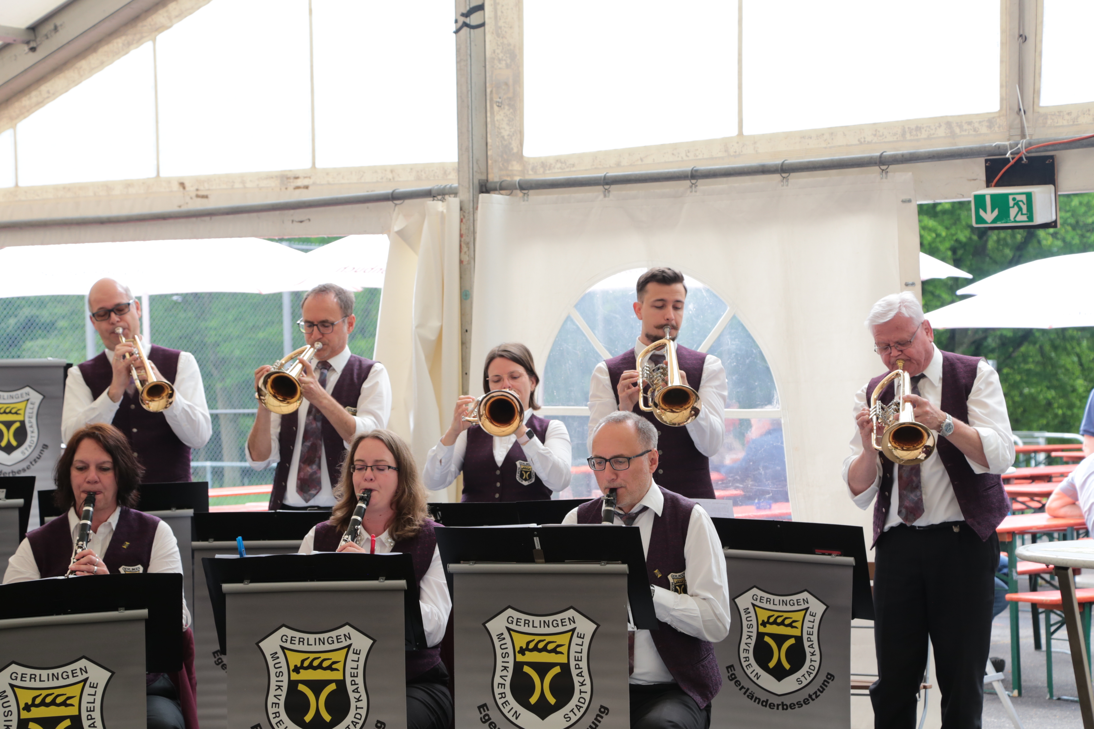 Am Sonntag, 5. Mai spielte die Egerländer Besetzung des Musikverein Gerlingens zum Frühschoppen beim Feuerbacher Göckelesfest auf. In drei Stunden wurden abwechselnd böhmische Blasmusik, moderne Arrangements und solistische Stücke präsentiert. Unser musikalischer Leiter Peter Gerl sorgte so für ein abwechselndes Programm, bei dem auch das ein oder andere Gesangsstück wie „Auf der Vogelwiese“ auf der Setlist stand. Speziell die solistischen Stücke wie „My Way“ oder eine moderne Version von „Hey Jude“ präsentiert kamen besonders gut beim Publikum an. Letzteres wurde von unserem Posaunisten Hermann Röser neu arrangiert, der auch das Posaunensolo übernommen hat. Unvergessen auch „My Dream“, beim dem unser Trompeter Markus Grieb das Stück einfach mal auswendig spielt.