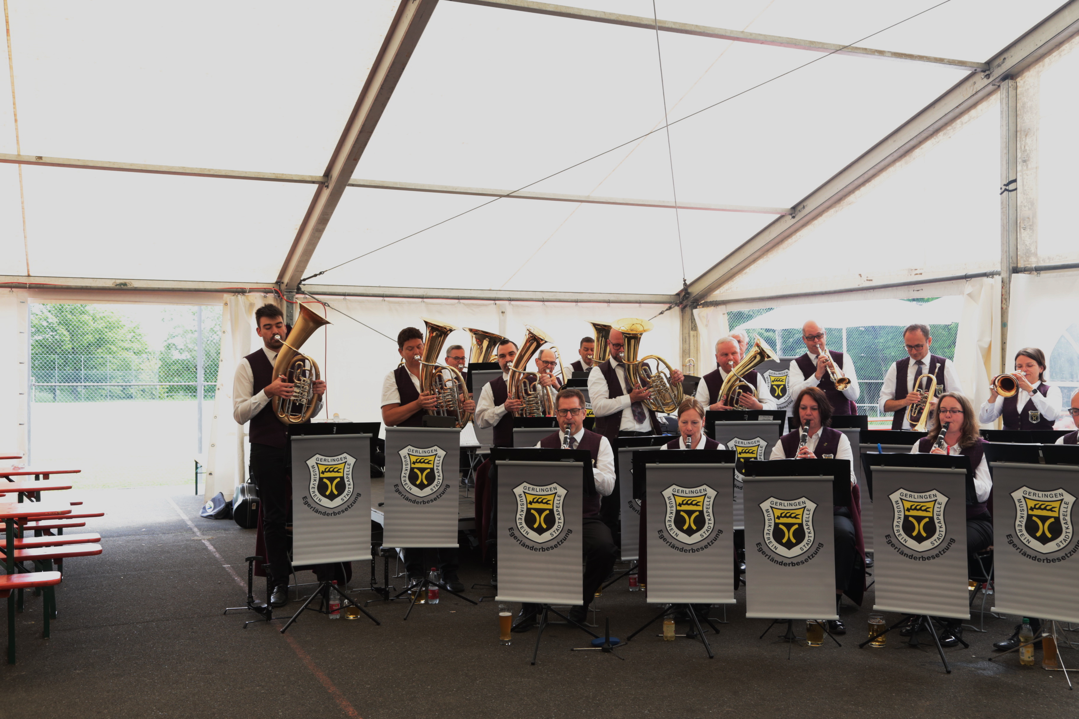 Am Sonntag, 5. Mai spielte die Egerländer Besetzung des Musikverein Gerlingens zum Frühschoppen beim Feuerbacher Göckelesfest auf. In drei Stunden wurden abwechselnd böhmische Blasmusik, moderne Arrangements und solistische Stücke präsentiert. Unser musikalischer Leiter Peter Gerl sorgte so für ein abwechselndes Programm, bei dem auch das ein oder andere Gesangsstück wie „Auf der Vogelwiese“ auf der Setlist stand. Speziell die solistischen Stücke wie „My Way“ oder eine moderne Version von „Hey Jude“ präsentiert kamen besonders gut beim Publikum an. Letzteres wurde von unserem Posaunisten Hermann Röser neu arrangiert, der auch das Posaunensolo übernommen hat. Unvergessen auch „My Dream“, beim dem unser Trompeter Markus Grieb das Stück einfach mal auswendig spielt.