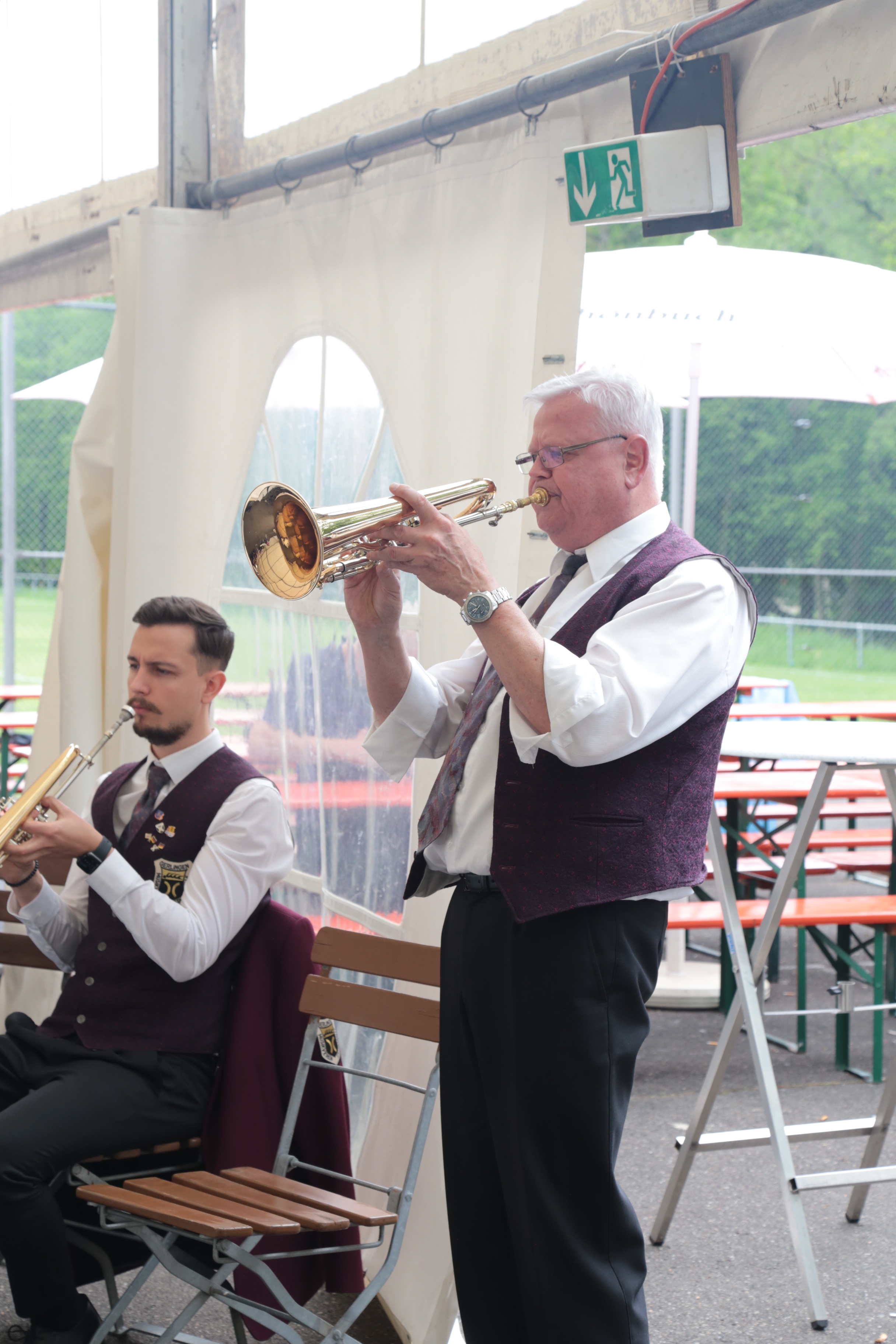 Im Anschluss an den Auftritt gab es von der Sportvereinigung noch ein leckeres Mittagessen mit einem passenden, kühlen Getränk dazu. Herzlichen Dank für die herrliche Bewirtung und für die musikalische Gestaltung des Frühschoppens. Wir kommen gerne wieder – es war ein toller Sonntag im Zelt.