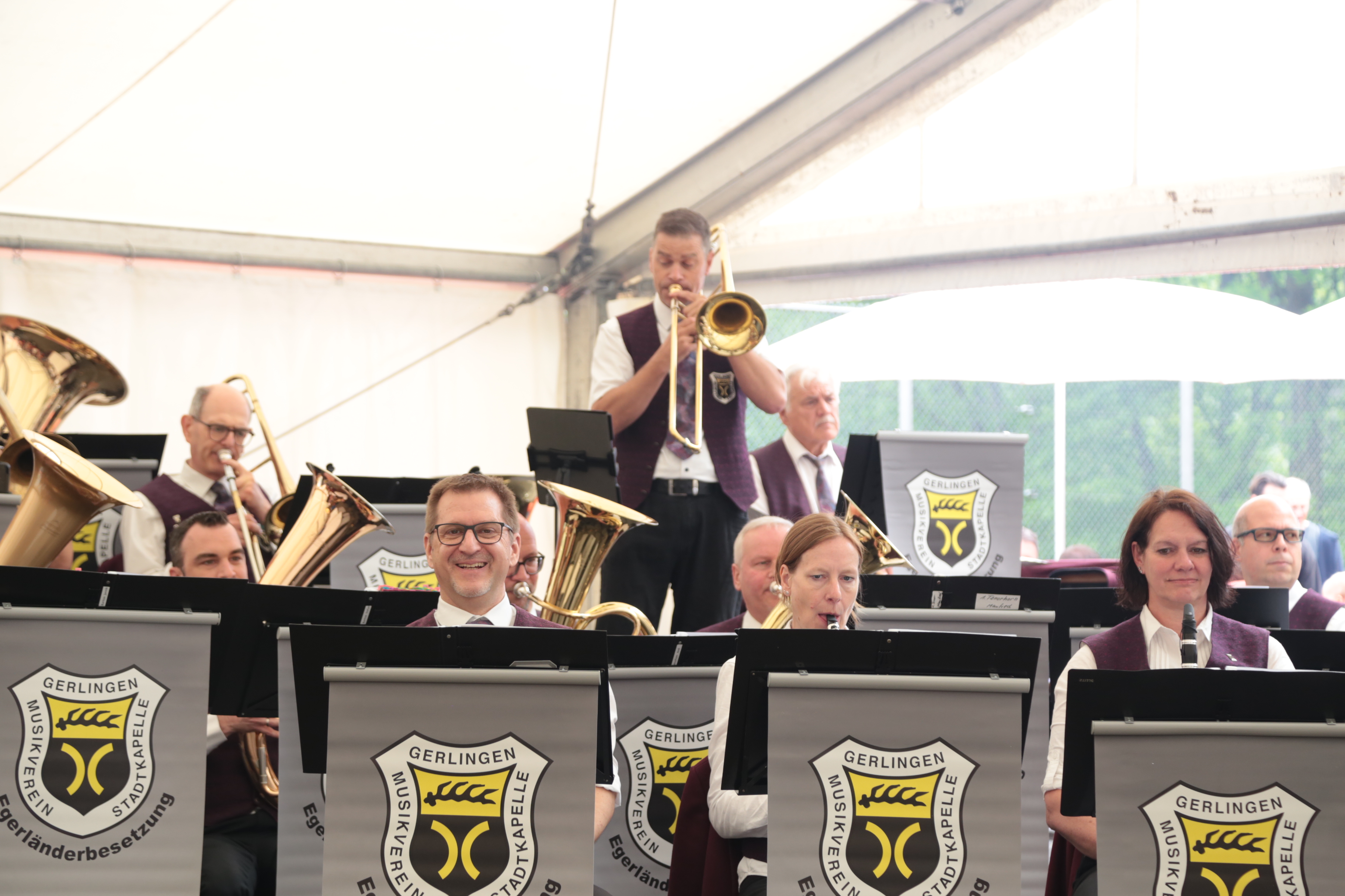 Am Sonntag, 5. Mai spielte die Egerländer Besetzung des Musikverein Gerlingens zum Frühschoppen beim Feuerbacher Göckelesfest auf. In drei Stunden wurden abwechselnd böhmische Blasmusik, moderne Arrangements und solistische Stücke präsentiert. Unser musikalischer Leiter Peter Gerl sorgte so für ein abwechselndes Programm, bei dem auch das ein oder andere Gesangsstück wie „Auf der Vogelwiese“ auf der Setlist stand. Speziell die solistischen Stücke wie „My Way“ oder eine moderne Version von „Hey Jude“ präsentiert kamen besonders gut beim Publikum an. Letzteres wurde von unserem Posaunisten Hermann Röser neu arrangiert, der auch das Posaunensolo übernommen hat. Unvergessen auch „My Dream“, beim dem unser Trompeter Markus Grieb das Stück einfach mal auswendig spielt.