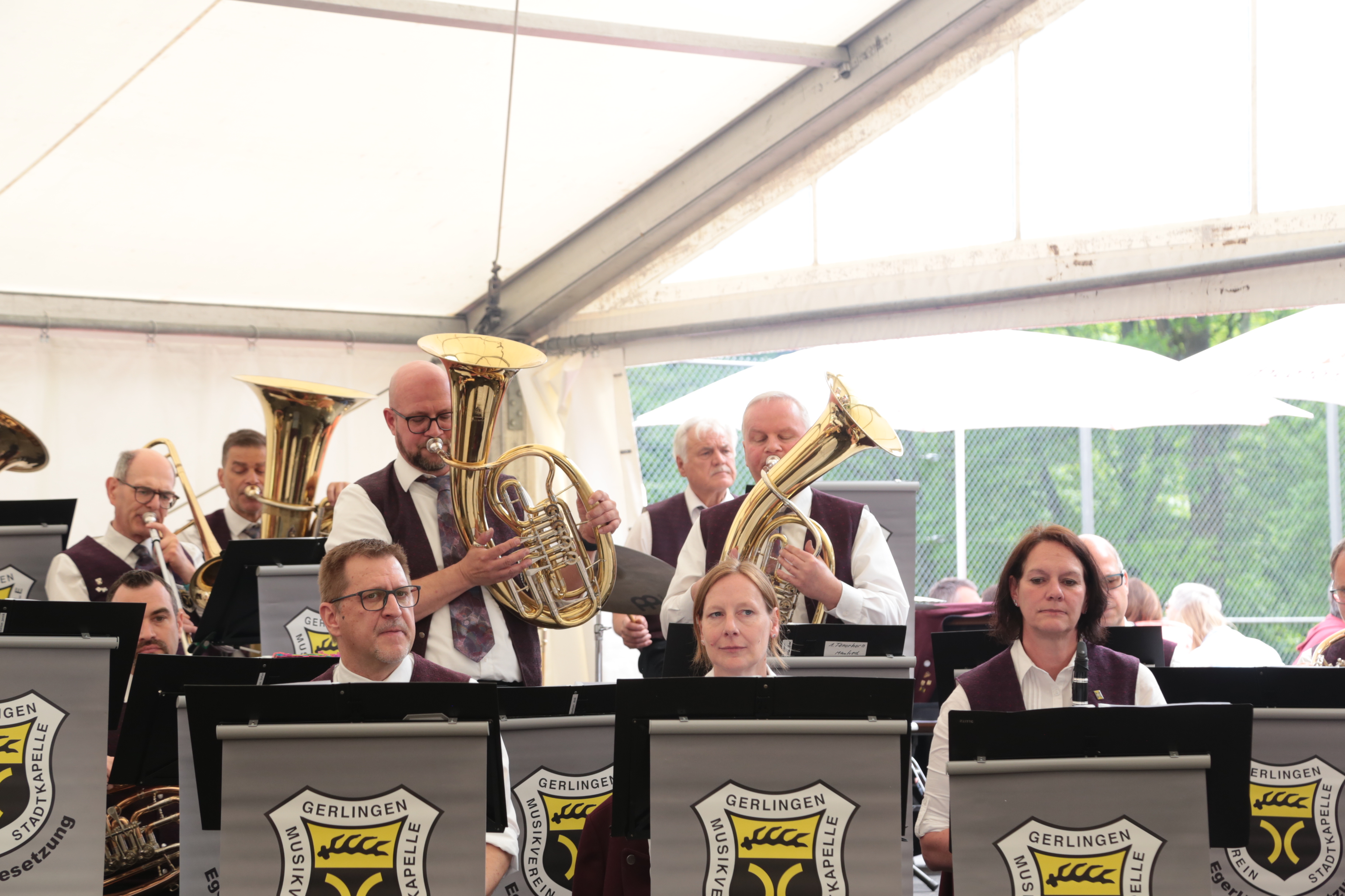 Am Sonntag, 5. Mai spielte die Egerländer Besetzung des Musikverein Gerlingens zum Frühschoppen beim Feuerbacher Göckelesfest auf. In drei Stunden wurden abwechselnd böhmische Blasmusik, moderne Arrangements und solistische Stücke präsentiert. Unser musikalischer Leiter Peter Gerl sorgte so für ein abwechselndes Programm, bei dem auch das ein oder andere Gesangsstück wie „Auf der Vogelwiese“ auf der Setlist stand. Speziell die solistischen Stücke wie „My Way“ oder eine moderne Version von „Hey Jude“ präsentiert kamen besonders gut beim Publikum an. Letzteres wurde von unserem Posaunisten Hermann Röser neu arrangiert, der auch das Posaunensolo übernommen hat. Unvergessen auch „My Dream“, beim dem unser Trompeter Markus Grieb das Stück einfach mal auswendig spielt.