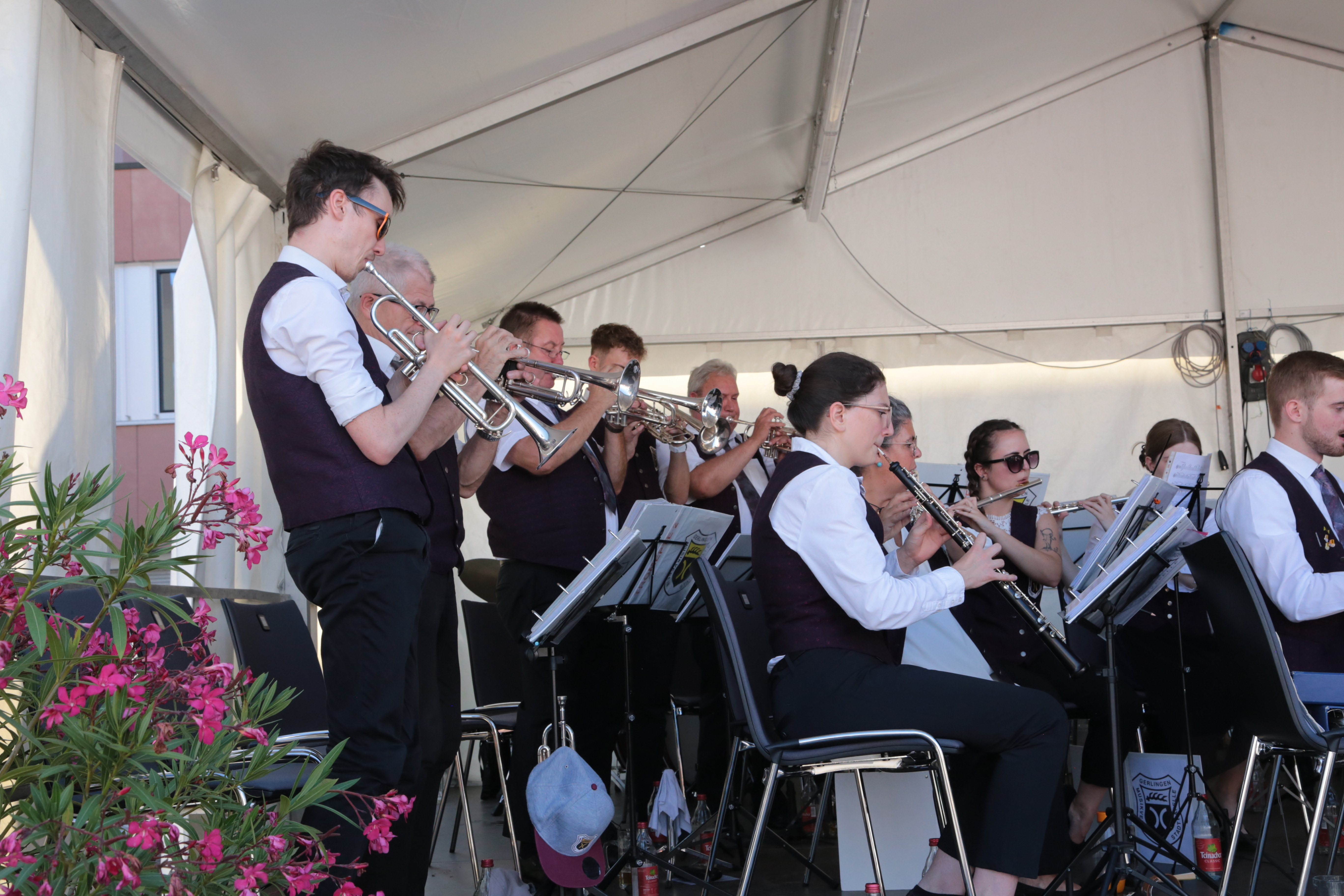 Im Anschluss an den Auftritt gab es von der Sportvereinigung noch ein leckeres Mittagessen mit einem passenden, kühlen Getränk dazu. Herzlichen Dank für die herrliche Bewirtung und für die musikalische Gestaltung des Frühschoppens. Wir kommen gerne wieder – es war ein toller Sonntag im Zelt.