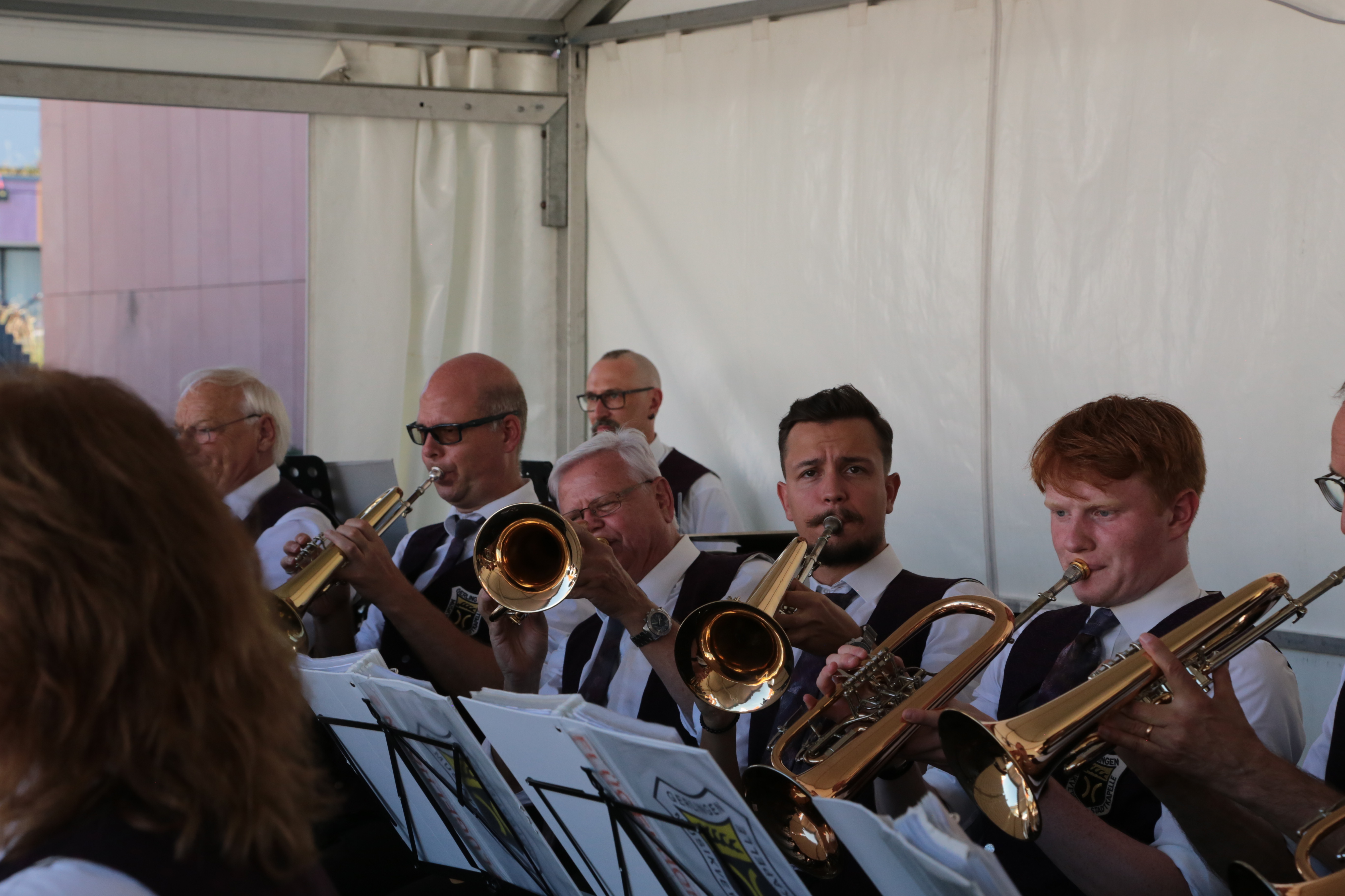 Am Sonntag, 5. Mai spielte die Egerländer Besetzung des Musikverein Gerlingens zum Frühschoppen beim Feuerbacher Göckelesfest auf. In drei Stunden wurden abwechselnd böhmische Blasmusik, moderne Arrangements und solistische Stücke präsentiert. Unser musikalischer Leiter Peter Gerl sorgte so für ein abwechselndes Programm, bei dem auch das ein oder andere Gesangsstück wie „Auf der Vogelwiese“ auf der Setlist stand. Speziell die solistischen Stücke wie „My Way“ oder eine moderne Version von „Hey Jude“ präsentiert kamen besonders gut beim Publikum an. Letzteres wurde von unserem Posaunisten Hermann Röser neu arrangiert, der auch das Posaunensolo übernommen hat. Unvergessen auch „My Dream“, beim dem unser Trompeter Markus Grieb das Stück einfach mal auswendig spielt.