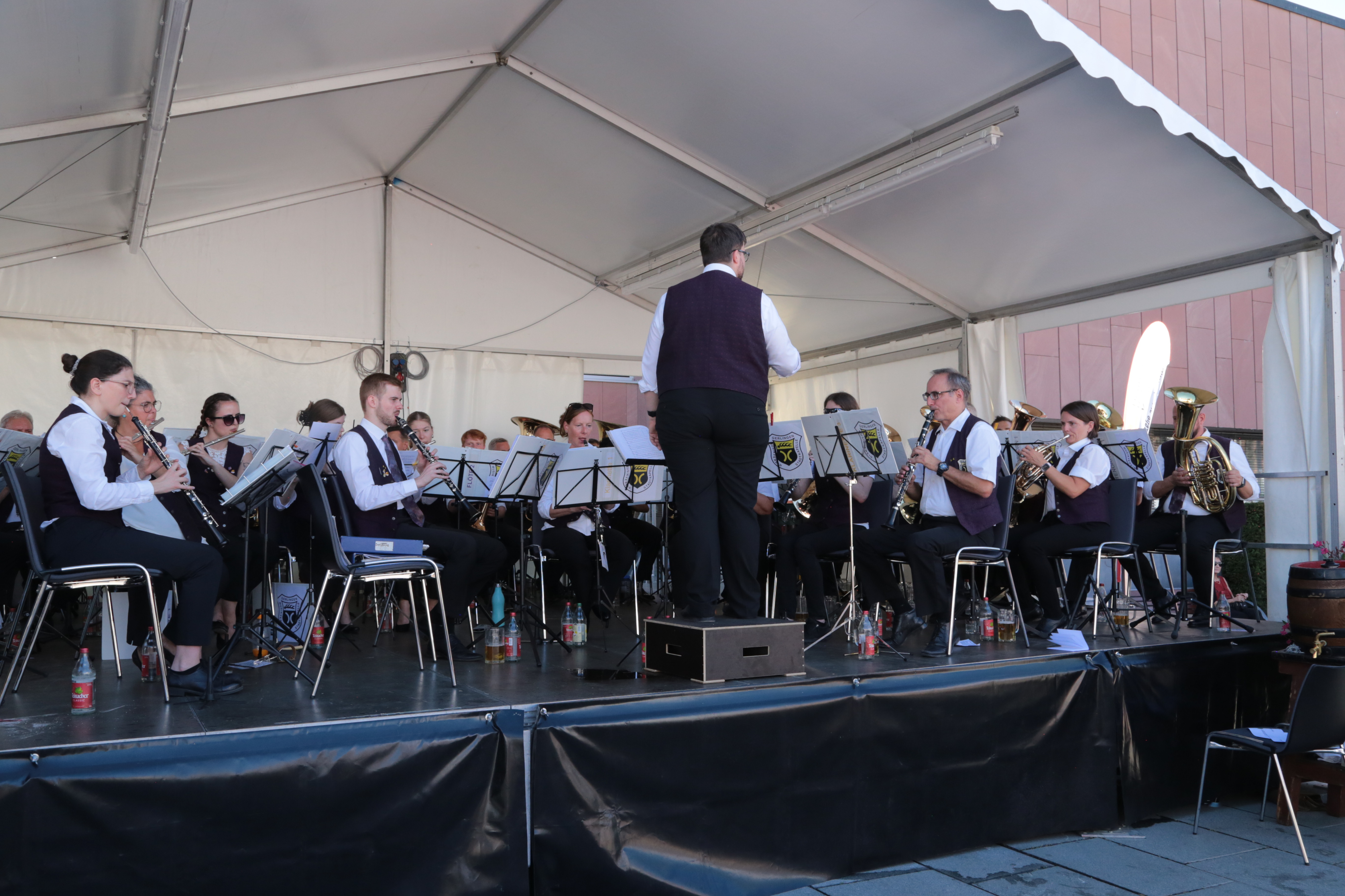 Im Anschluss an den Auftritt gab es von der Sportvereinigung noch ein leckeres Mittagessen mit einem passenden, kühlen Getränk dazu. Herzlichen Dank für die herrliche Bewirtung und für die musikalische Gestaltung des Frühschoppens. Wir kommen gerne wieder – es war ein toller Sonntag im Zelt.
