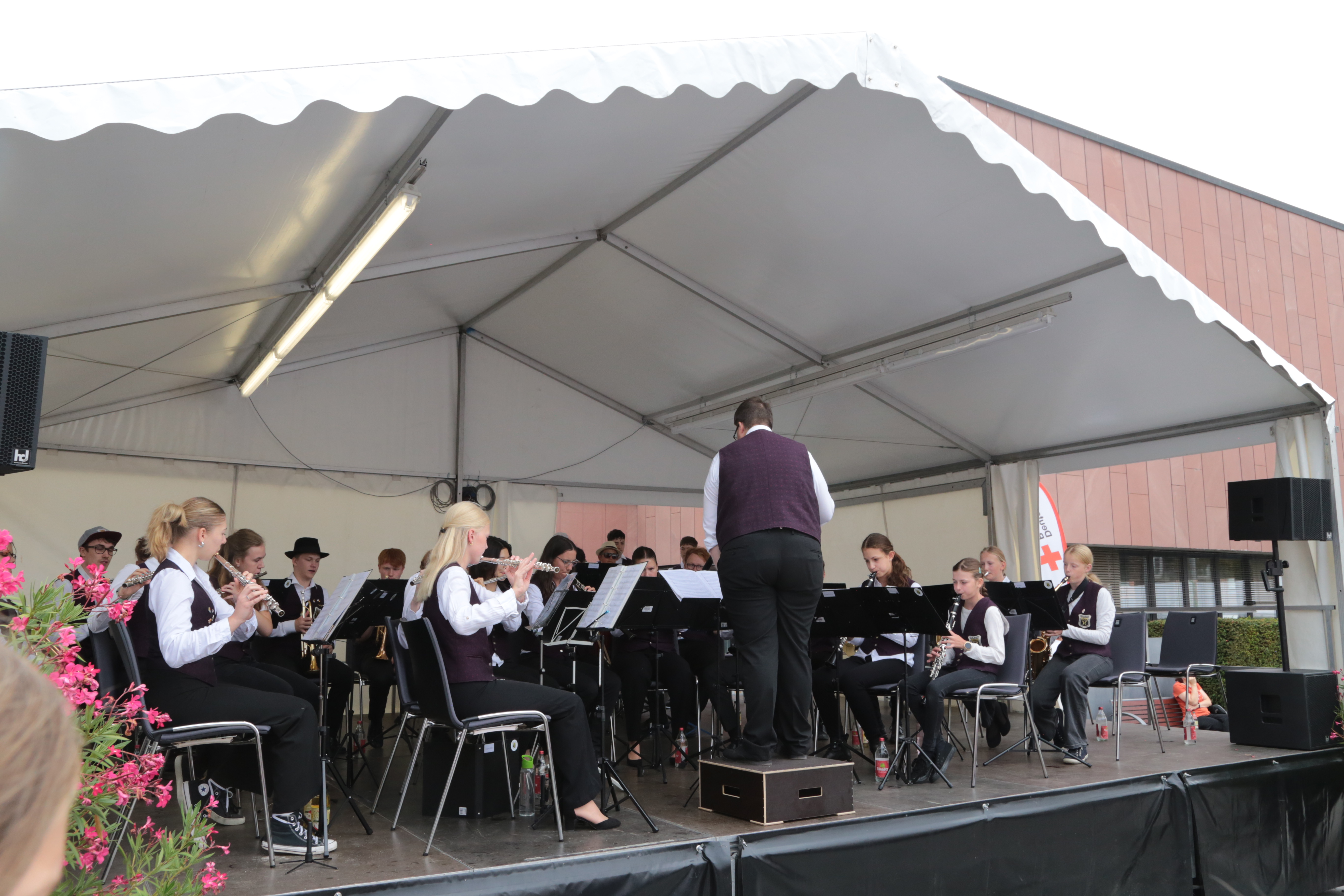 Im Anschluss an den Auftritt gab es von der Sportvereinigung noch ein leckeres Mittagessen mit einem passenden, kühlen Getränk dazu. Herzlichen Dank für die herrliche Bewirtung und für die musikalische Gestaltung des Frühschoppens. Wir kommen gerne wieder – es war ein toller Sonntag im Zelt.