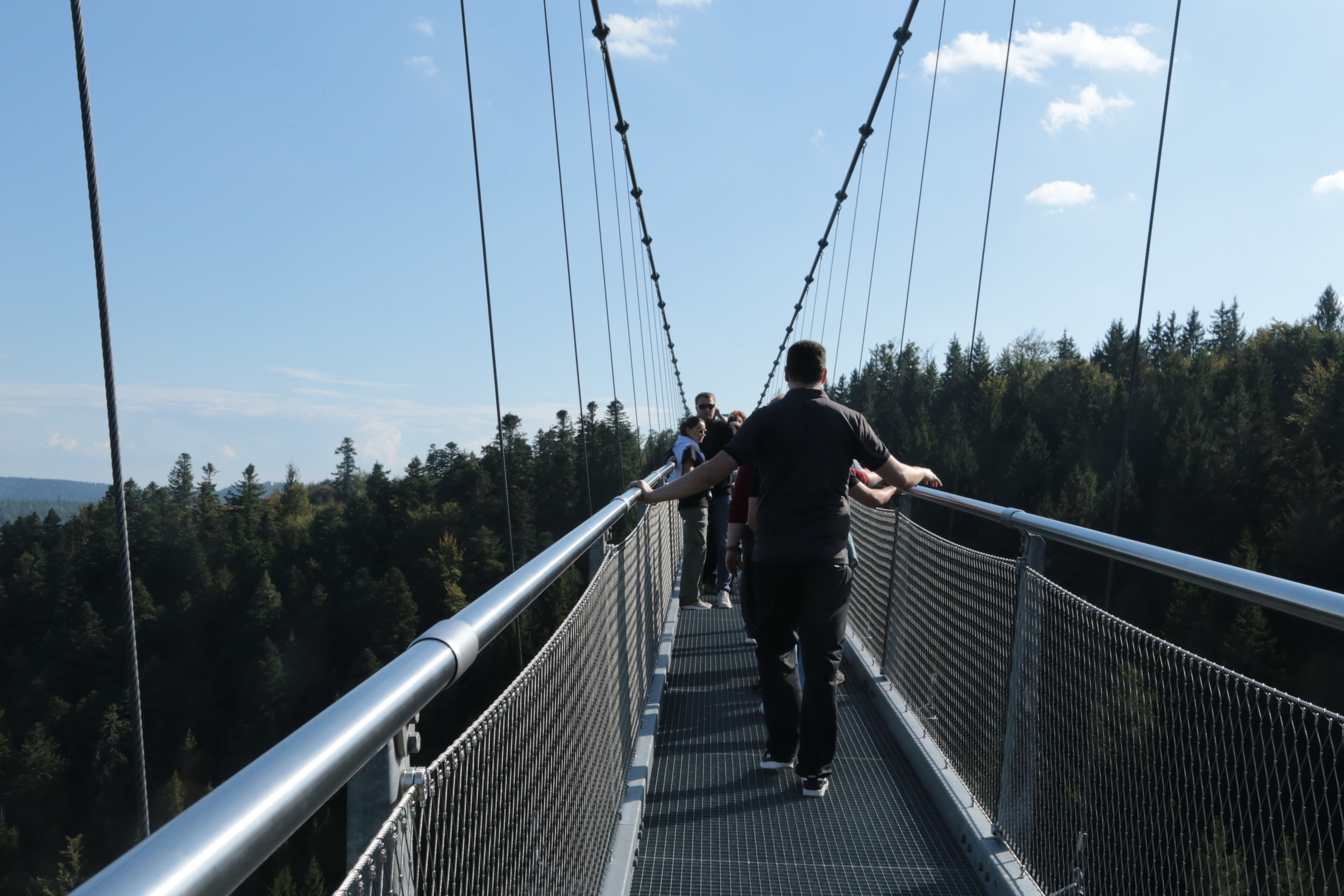 Nach einer ereignisreichen Saison 2024 muss auch mal ein Termin sein, bei dem es nicht um Arbeitsschichten am Grill, Treffen für Vorbereitungen, Einkäufe und Festbetrieb geht. So einen Termin hatten wir am Samstag, den 21. September bei perfektem Wetter. Gegen Mittag ging es mit dem Reisebus in den Schwarzwald. Das Ziel: Der Baumwipfelpfad. Knapp 60 Personen sind der Einladung des Musikvereins gefolgt, um mit der Sommerbergbahn den Baumwipfelpfad entlang zu gehen. Auf dem Weg zum 40 Meter hohen Aussichtsturm wurden viele Möglichkeiten für kurzweilige Gespräche genutzt. So vergisst der eine oder andere auch seine Höhenangst. Die ganz mutigen haben direkt im Anschluss noch den Gang über die 60 Meter hohe Hängebrücke, die Wildline, genutzt. Für die ganz harten galt hier das Motto „hüpfen bis die Brücke wackelt“.