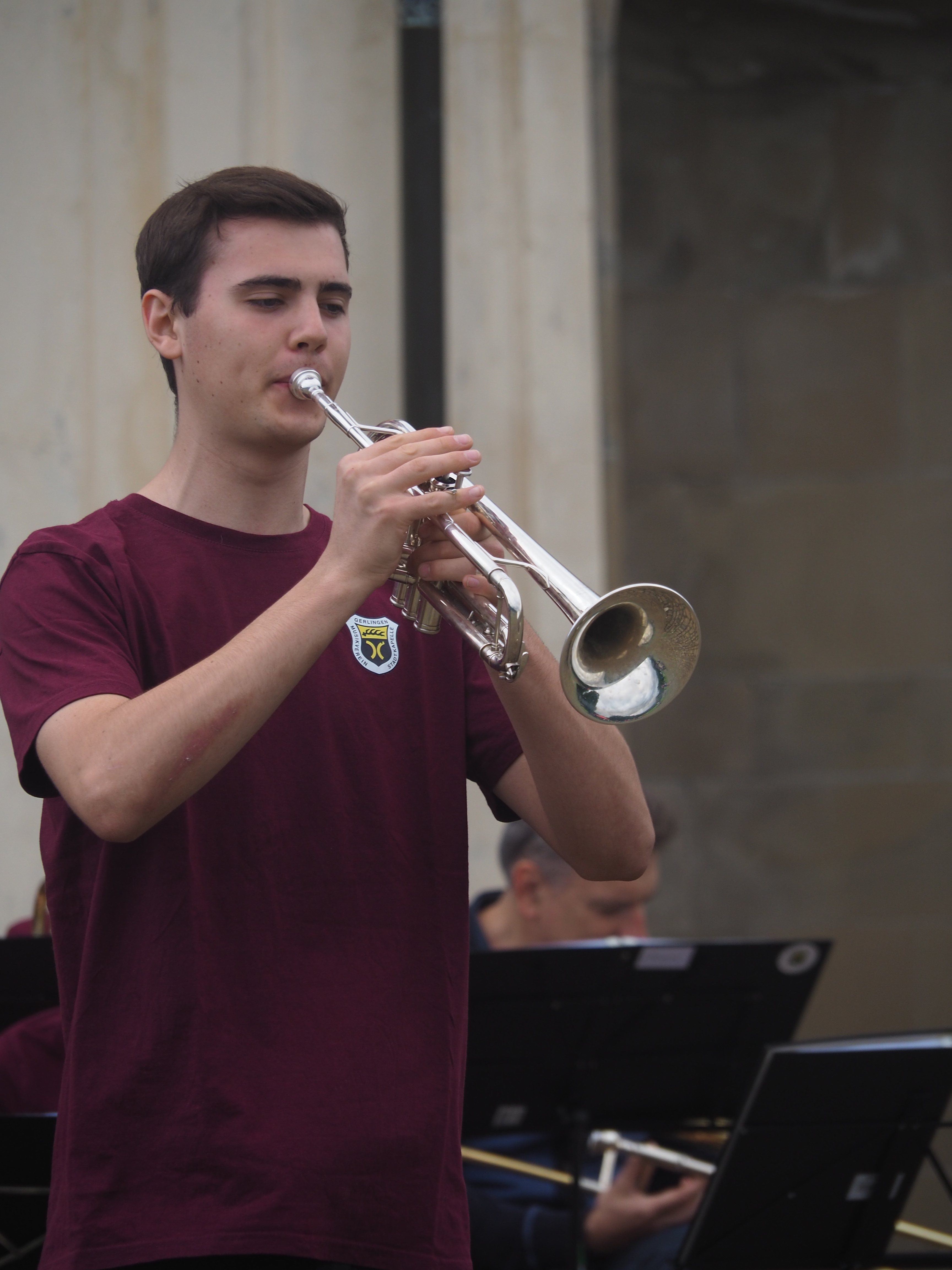 Am Sonntag, 5. Mai spielte die Egerländer Besetzung des Musikverein Gerlingens zum Frühschoppen beim Feuerbacher Göckelesfest auf. In drei Stunden wurden abwechselnd böhmische Blasmusik, moderne Arrangements und solistische Stücke präsentiert. Unser musikalischer Leiter Peter Gerl sorgte so für ein abwechselndes Programm, bei dem auch das ein oder andere Gesangsstück wie „Auf der Vogelwiese“ auf der Setlist stand. Speziell die solistischen Stücke wie „My Way“ oder eine moderne Version von „Hey Jude“ präsentiert kamen besonders gut beim Publikum an. Letzteres wurde von unserem Posaunisten Hermann Röser neu arrangiert, der auch das Posaunensolo übernommen hat. Unvergessen auch „My Dream“, beim dem unser Trompeter Markus Grieb das Stück einfach mal auswendig spielt.